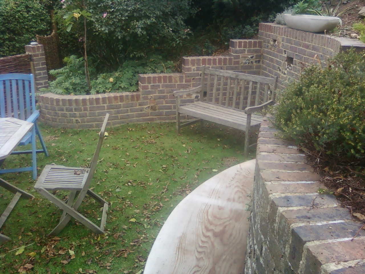 We wanted to let you know how pleased we are with the work you did in our rather challenging and steep, chalk-banked garden this summer. You responded to our ideas with enthusiasm, and found a way round all the potential obstacles. The resulting curved brick and flint retaining walls look great and have received many positive comments from visitors, not least from a builder friend with an eye for professional detail. All the materials used were well sourced, including the redwood bench from a Sussex Estate. It was also good to recycle materials already in the garden. Thanks for coming back recently to attend to snags. It’s nice to know you take an interest in a job once completed. You and your team were a pleasure to have on site and we will definitely choose to work with you again.
